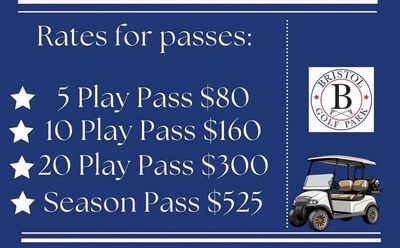 Currently held passes expire December 31st, 2025, or based on season closure date. Play passes are not valid for league and event play. Valid weekdays and weekends. Each use is valued for 9 holes, when playing 18 holes, two uses will be deducted. Cart use not included.